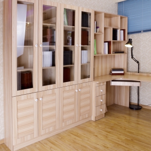 第三步:外形的安装。在这里我们需要对书柜的各个面板进行安装,然后使用胶或者是合页进行固定。对于旁板跟顶板,再加上面板的安装,我们需要按步骤来进行。一般来讲在购置组合书柜的时候,相应的安装点都已经标注好了,相应的眼也已经打好了,我们只需要安装就可以了。